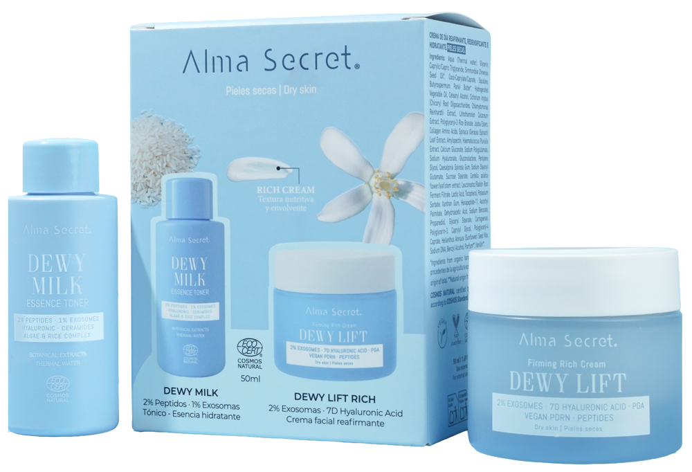 Cofre Mini Dewy Milk & Dewy Lift Rich Cream, de Alma Secret.