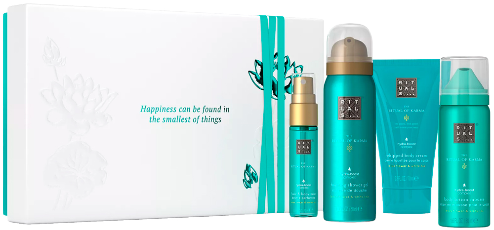 La flor de loto y el té blanco inundan los productos de este kit de regalo que contiene un gel de ducha en espuma: Travel Foam Gel (50ml); la crema corporal densa Travel Body Cream (70ml), la Body Lotion Mousse (50ml.), una loción corporal en formato espuma y la bruma para el cuerpo y cabello Hair & Body Mist (20ml).