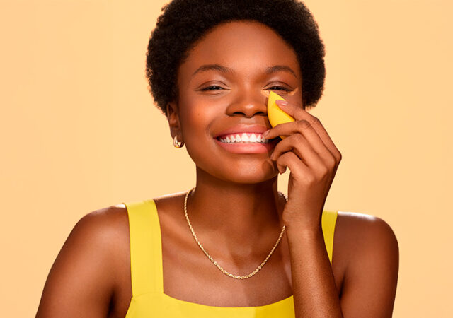 La esponja, especialmente cuando se utiliza ligeramente humedecida, tiende a fundir la base con la piel. Al absorber parte del producto, deposita capas más finas y facilita un acabado más natural.